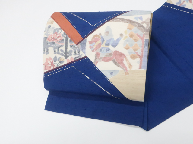 > 《京都一輝堂》リサイクル着物 京袋帯 お太鼓柄 ひげ紬 正絹 25b08-1585