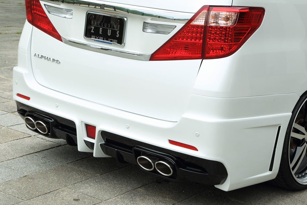 - M'z SPEED リアバンパースポイラー(マフラー4本出し用) 未塗装 FRP アルファードハイブリッド ATH20W H23.11~H26.12 MC後
