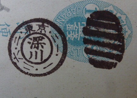 - 小判1銭はがき 東京支局 深川ボタ 2枚組 茶と黒色 使用済 美品 JPA-47-40-8