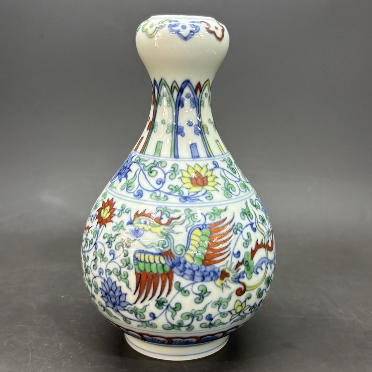 - ▽鴻▽明時代 陶磁器 大明成化年製 斗彩纏枝蓮鳳紋頭瓶 共箱 時代物 中国古美術 骨董品