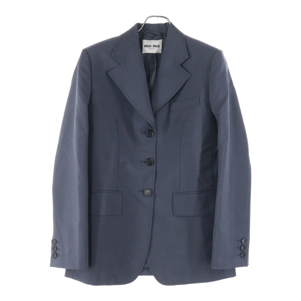 - miumiu ミュウミュウ シングルブレスト キッドモヘヤ ジャケット グレー レディース