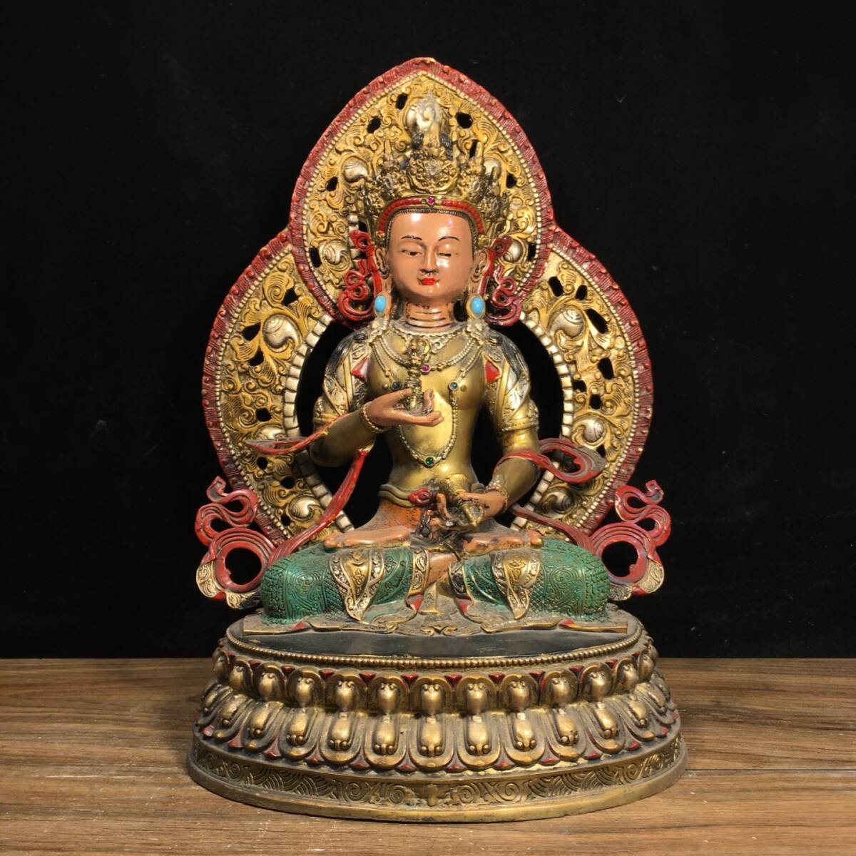 - 【超珍館蔵】銅製 塗金 彩繪 金剛薩スタック 仏教古美術 供養品 古賞物 古美術品 稀少珍蔵品
