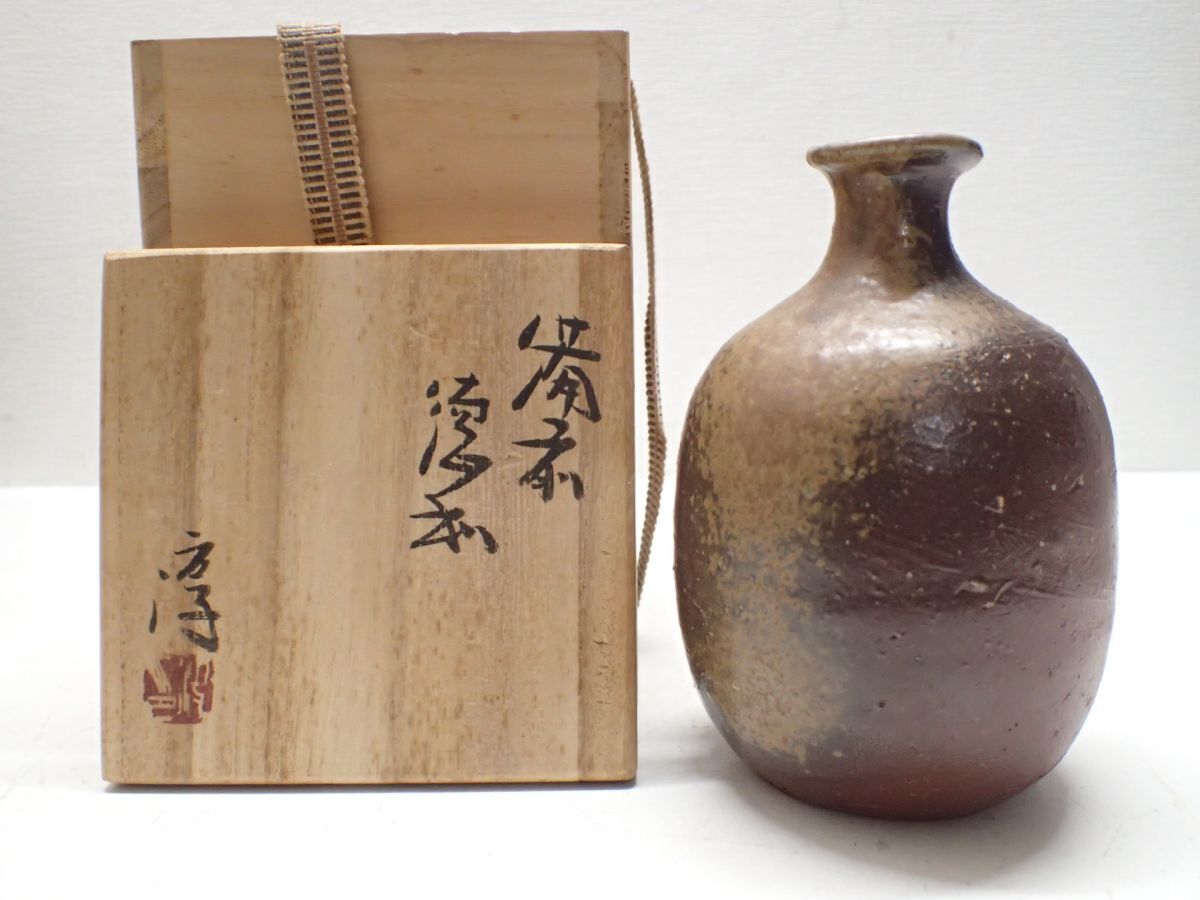 - M548/6B〇人間国宝【伊勢崎 淳】備前焼 徳利 共箱付き 美品〇