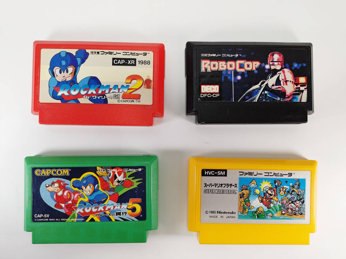 - 【難あり】ファミコンカセット4本セット 起動確認済み ROBOCOP ロックマン スーパーマリオブラザーズ