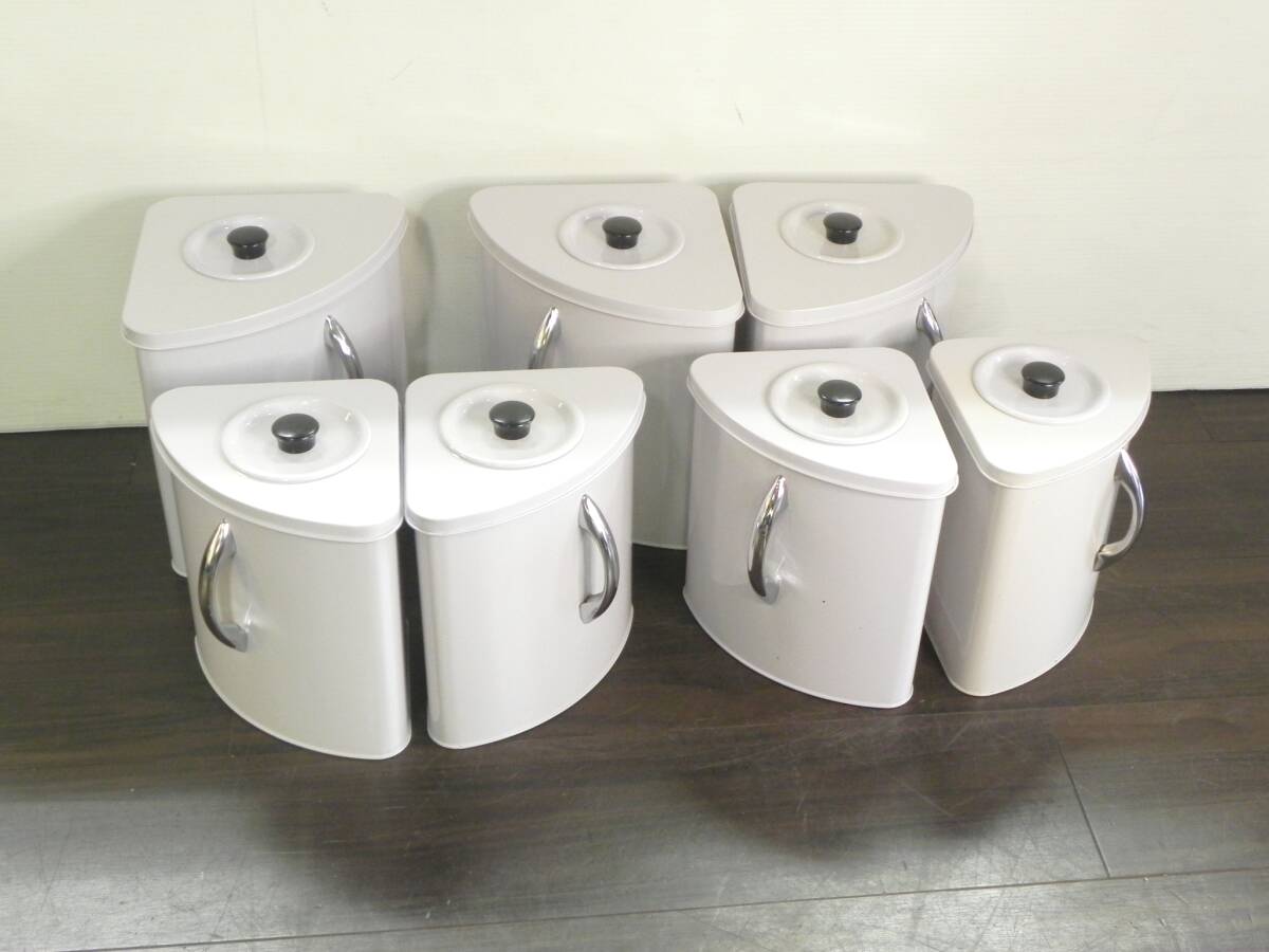 > [R4960]☆未使用★金属製 汚物入れ (M)3個 (S)4個 蓋付 白 トイレ用三角コーナー サニタリーボックス くず入れ