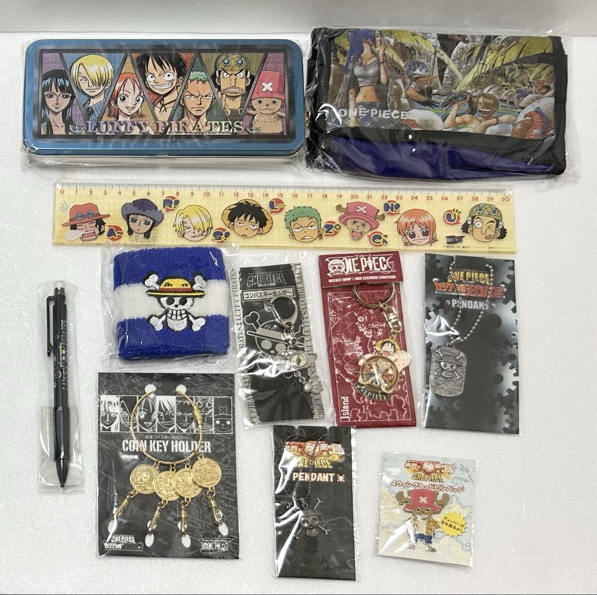 > ONEPIECE コンパスキーホルダー メカ巨兵 ペンダント リストバンド 定規 ピンバッジ 初期グッズ 缶ペン ゾロ サンジ ルフィ セット