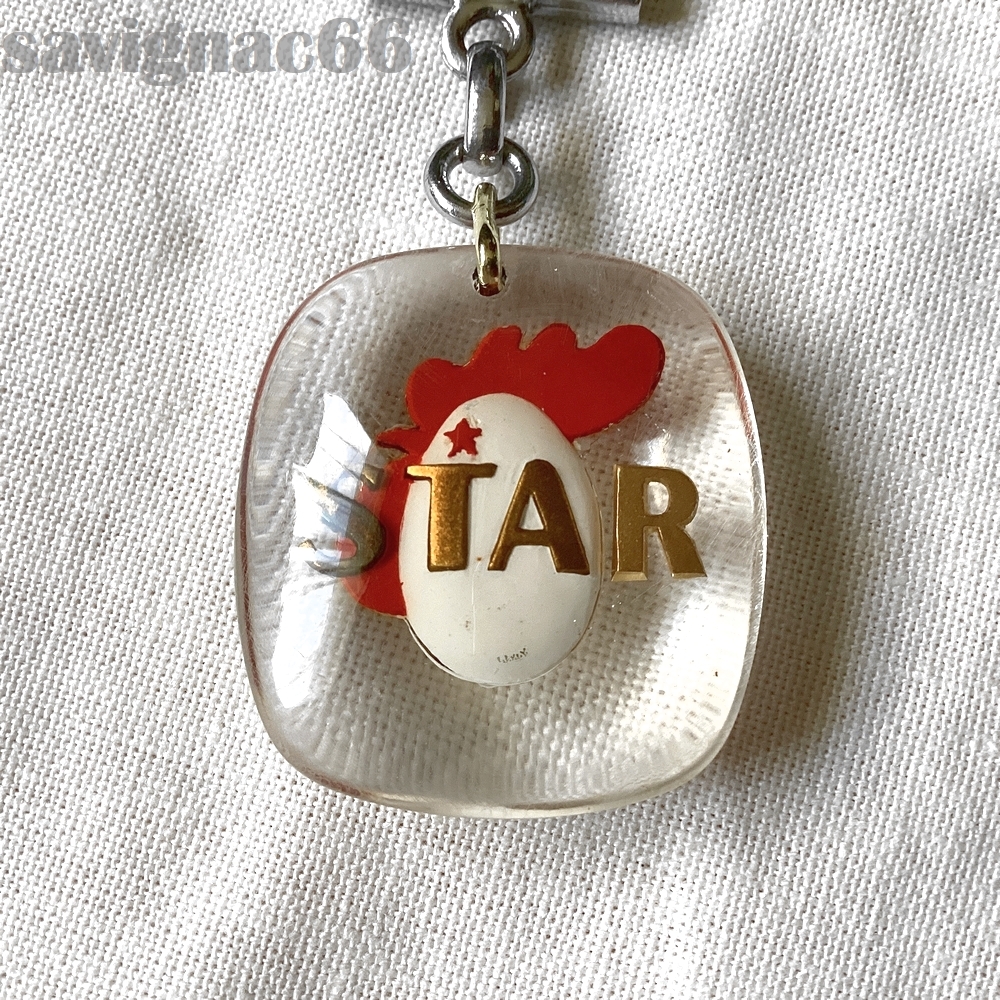 - 60年代 フレンチキーホルダー ブルボン STAR ニワトリ タマゴ 鶏 卵 ★ 60s フランス vintage アンティーク カントリー レトロ 蚤の市 雑貨