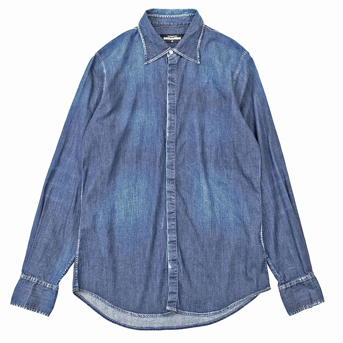 - SALE【美品】DSQUARED2 ディースクエアード シャツ 長袖 デニム 2018年製 フライフロント 比翼仕立て トップス メンズ 50 インディゴ 伊製