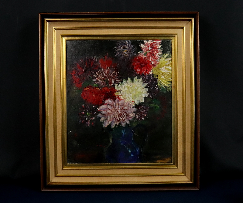- 11162■【真作】佐伯米子 静物画 花 キャンバス 油彩 佐伯祐三の妻 モーリス・ド・ヴラマンクに師事 額装