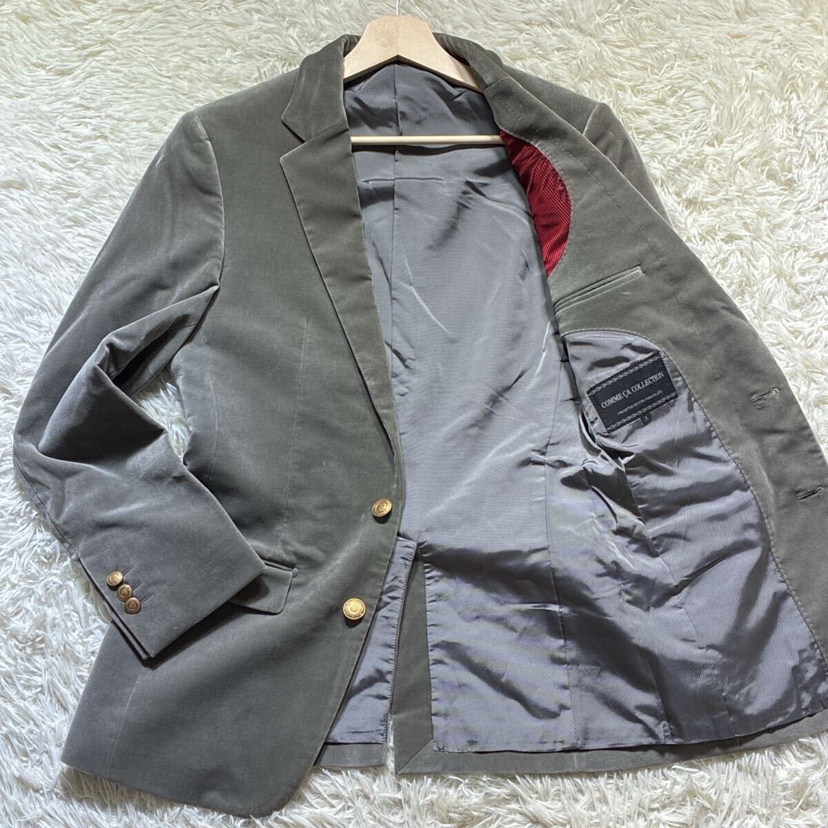 > 極美品◎コムサコレクション COMME CA COLLECTION テーラードジャケット ベロア ベルベット グレー 高級 光沢感 金ボタン メンズ 紳士服