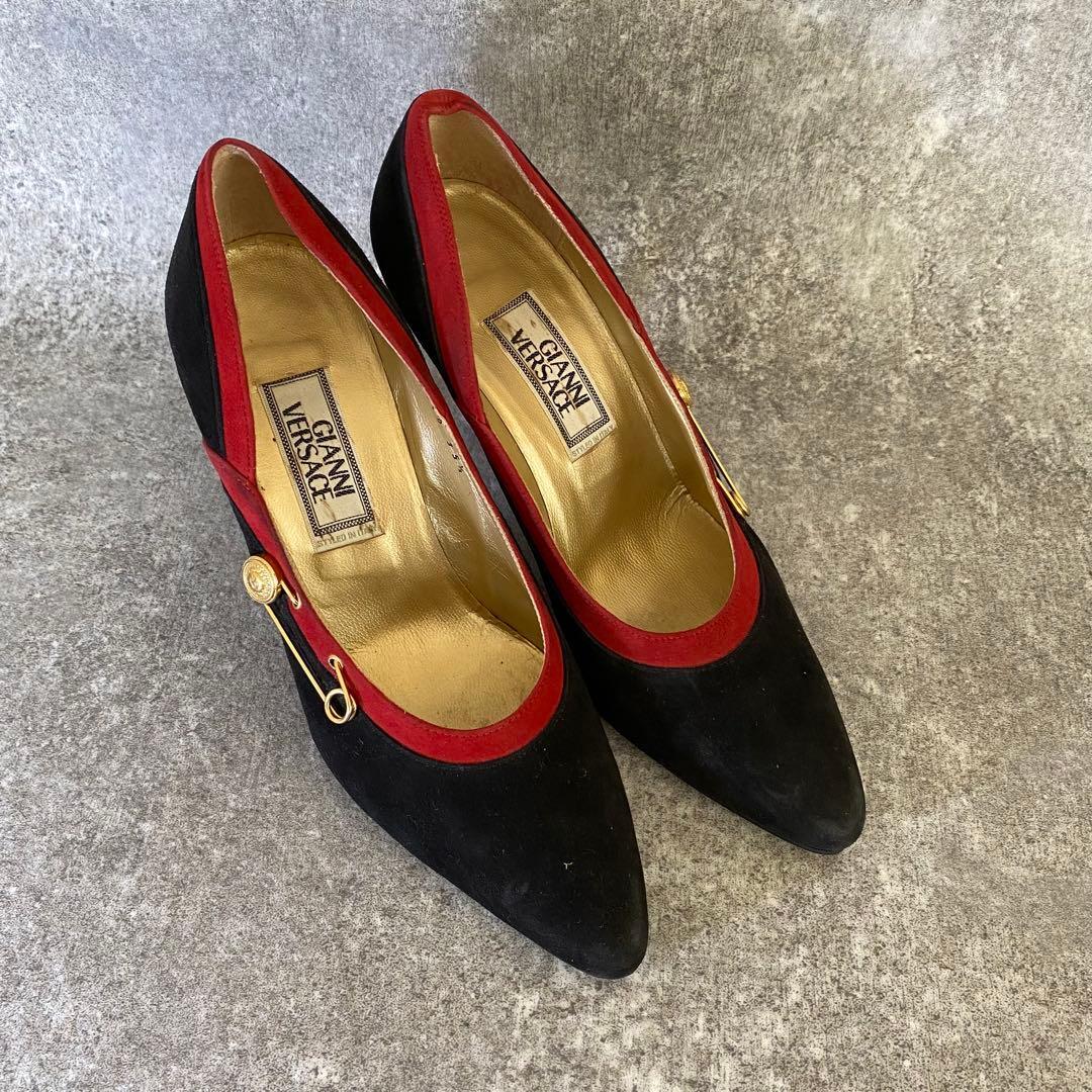 - ジャンニヴェルサーチ パンプス スエード レッド ピン留め メデューサ 22.5cm