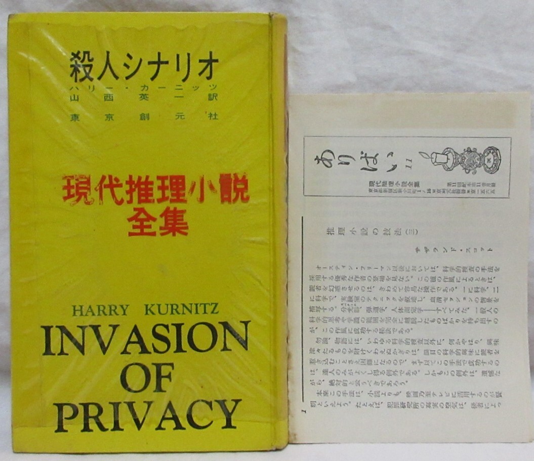 - 【初版/月報付】■現代推理小説全集 第11巻■ハリー・カーニッツ『殺人シナリオ』■東京創元社 昭和33年発行