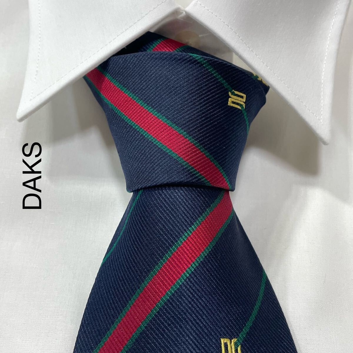 - DAKS ダックス ロゴ レジメンタル ストライプ シルク ネクタイ ネイビー レッド グリーン TG2963
