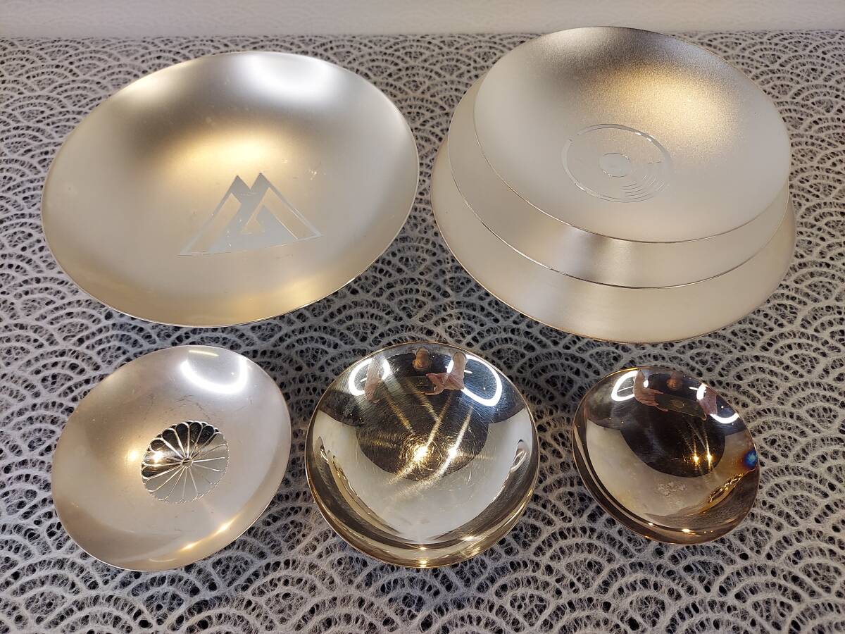 - K04-1013 純銀刻印 酒器 酒盃 記念盃 大中小 7点 総量目 605g 純銀製 保証品