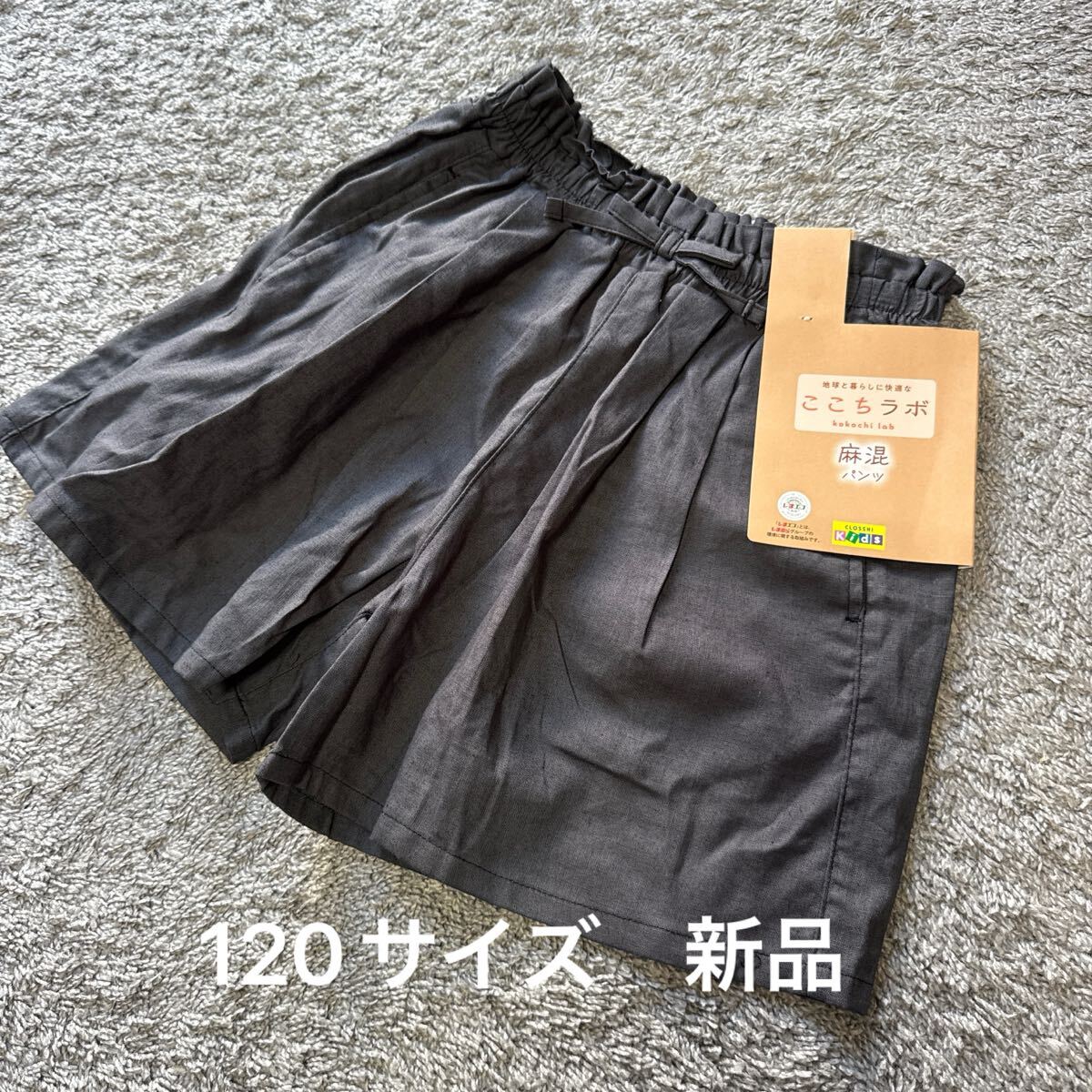 > こども服 麻混ウエストリボンショートパンツチャコール120★ゆうパケット配送可能★新品30