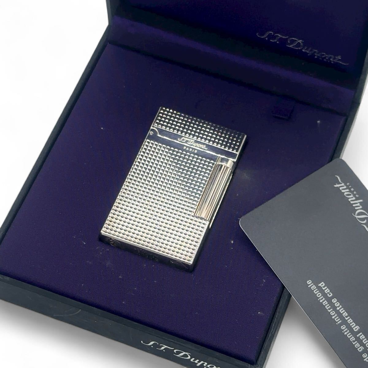 - 【正規品+極美品】S.T DUPON エステーデュポン ガスライター ダイアモンドヘッド シルバー 開閉音キーン 着火ok