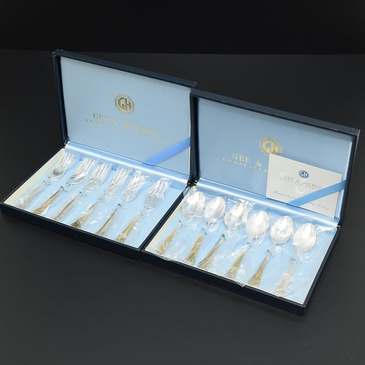 - ◎546274 GEE&HOLMES ジー&ホルム 希少 ヘリテージコレクション カトラリーセット 英国王室御用達 銀仕上 スプーン&フォーク 箱入