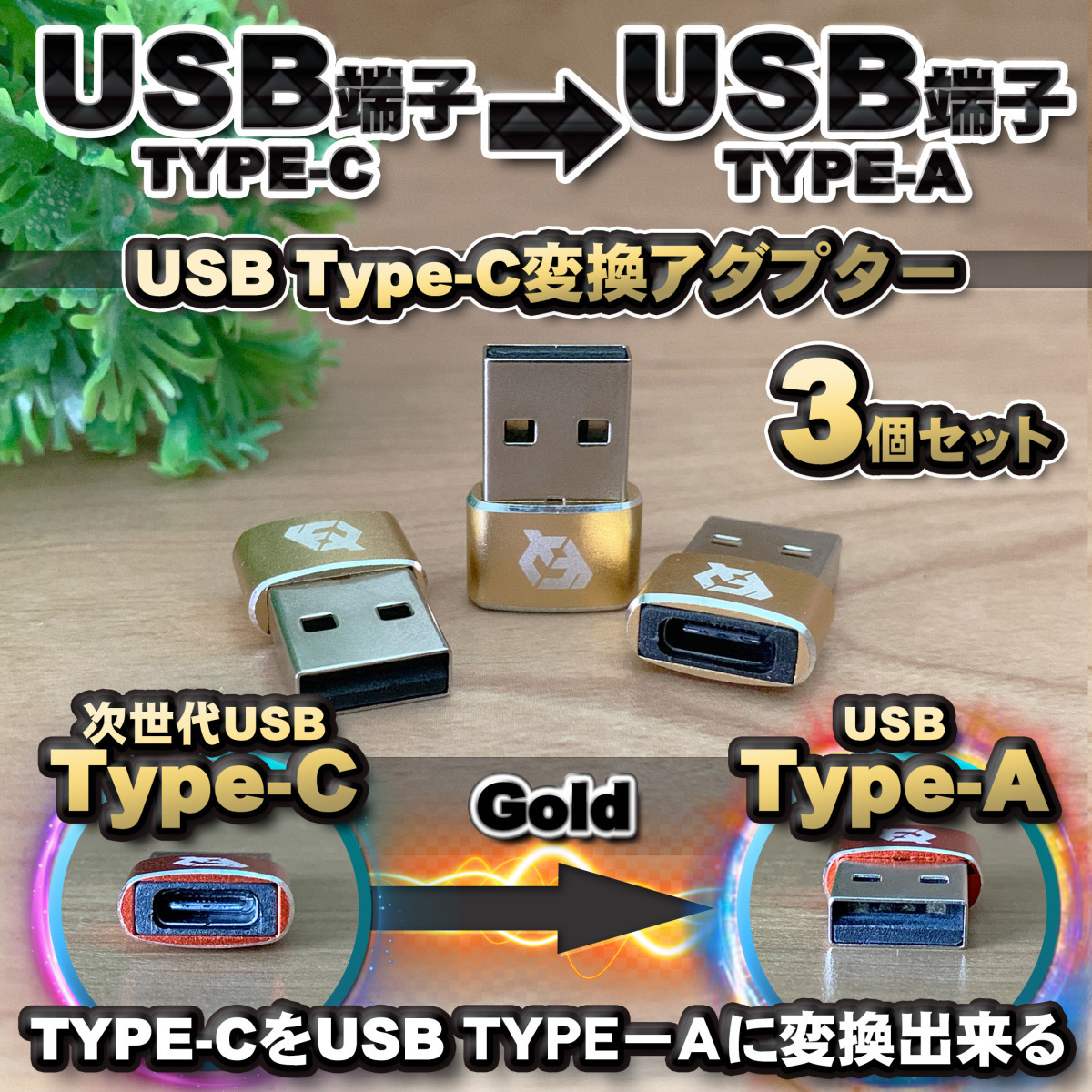 > USB Type C ケーブル → USB端子 (Type-A) に変換する アダプター x3 【ゴールド】
