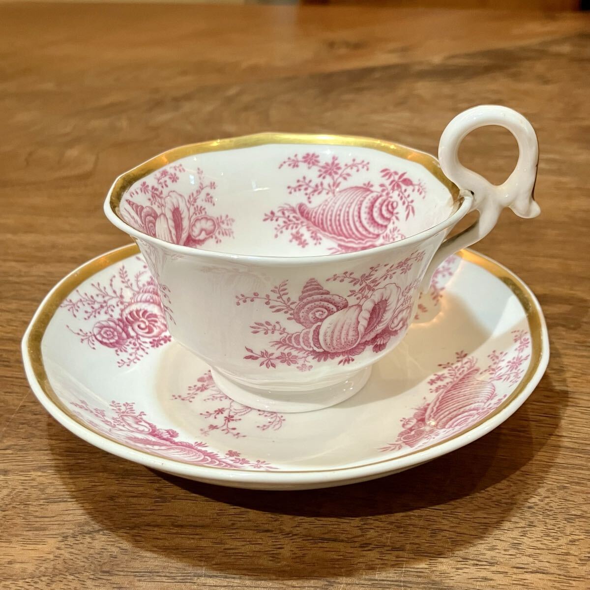 > ●英国 antique アンティーク カップ&ソーサー イギリス/1880~1870年頃/巻貝/金彩/詳細不明/骨董催事購入品/1客/一点もの