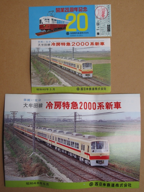 > 昭和48・51年 西鉄 筑豊電鉄 記念切符 記念絵葉書 リーフレット 計3点 大牟田線 冷房特急2000系新車運転開始 開業20周年