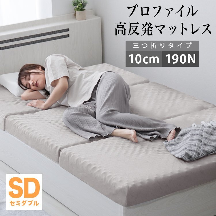 > 【ホワイトグレージュ/セミダブル】マットレス 三つ折り 高反発マットレス 腰痛 プロファイル加工 極厚10cm ベッドマットレス 洗えるカバー