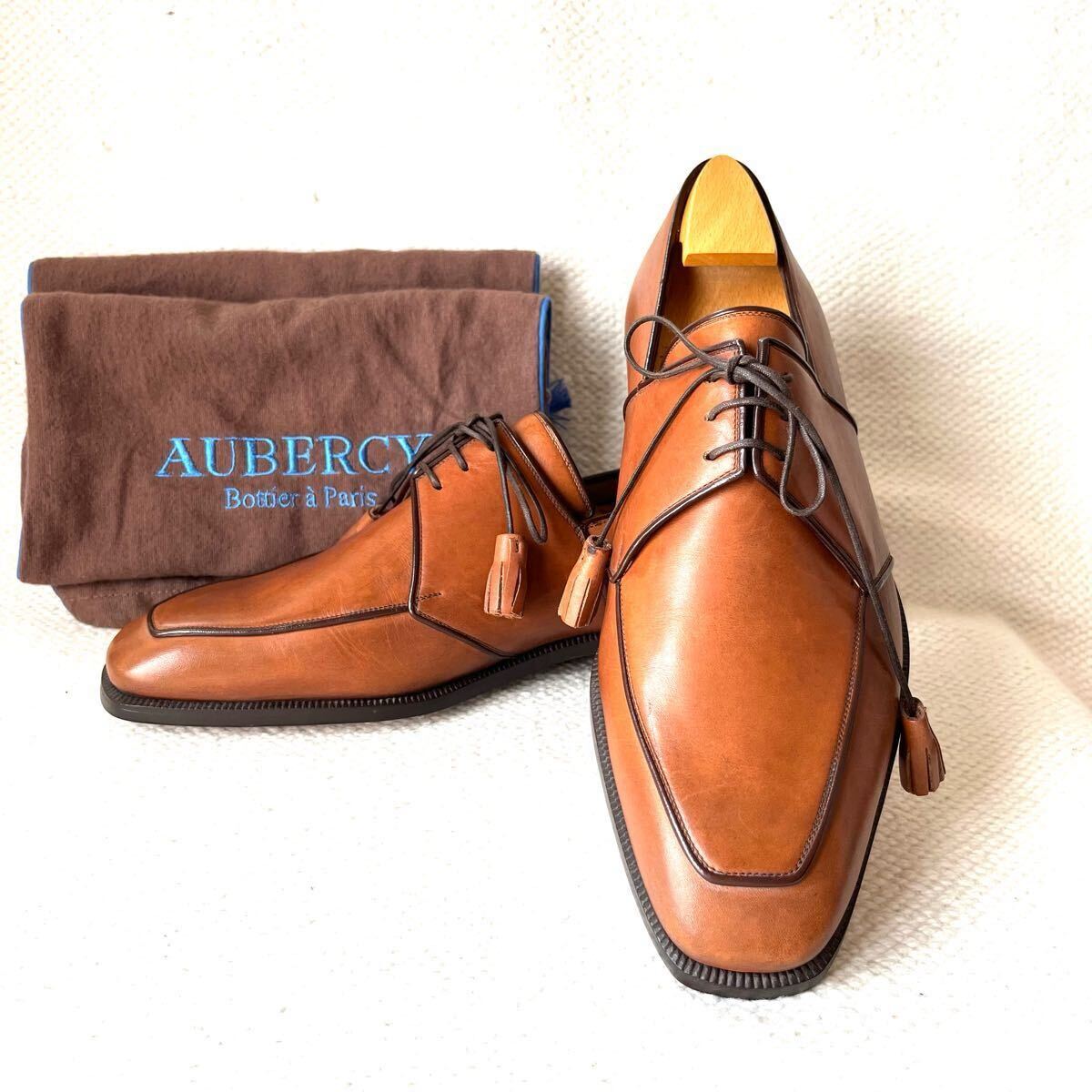 > 未使用 AUBERCY オーベルシー ブラウン 伊勢丹別注 ISETAN タッセル ビジネスシューズ レザー 茶 6.5 24.5cm-25cm シューツリー 保存袋