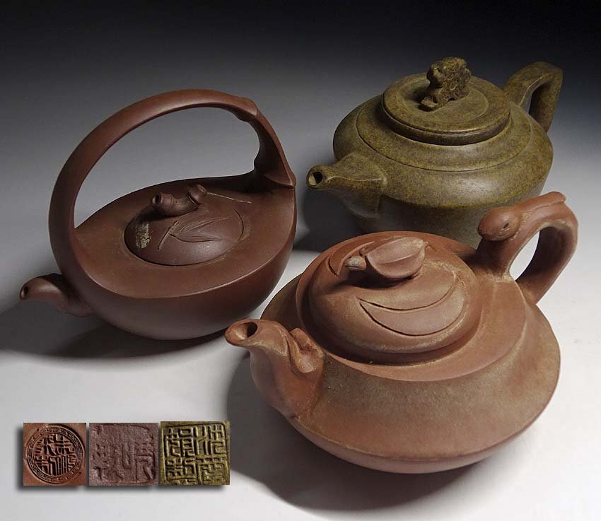 > 緑屋s■ 中国古玩 在銘 朱泥 急須 3点まとめて 唐物 時代物 煎茶道具 bnit/9-286/29-7#80