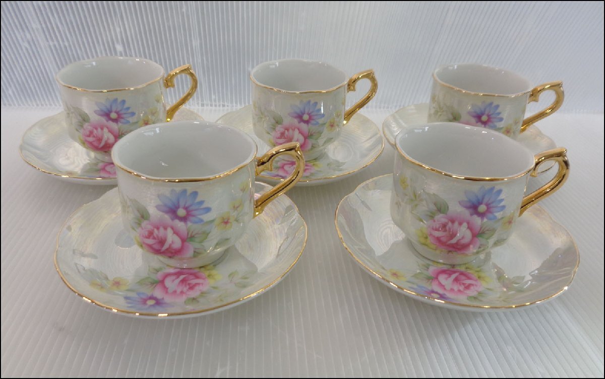 > Bana8◆marumitu/マルミツ カップ&ソーサー 5客セット モダン レトロ 花 光沢あり