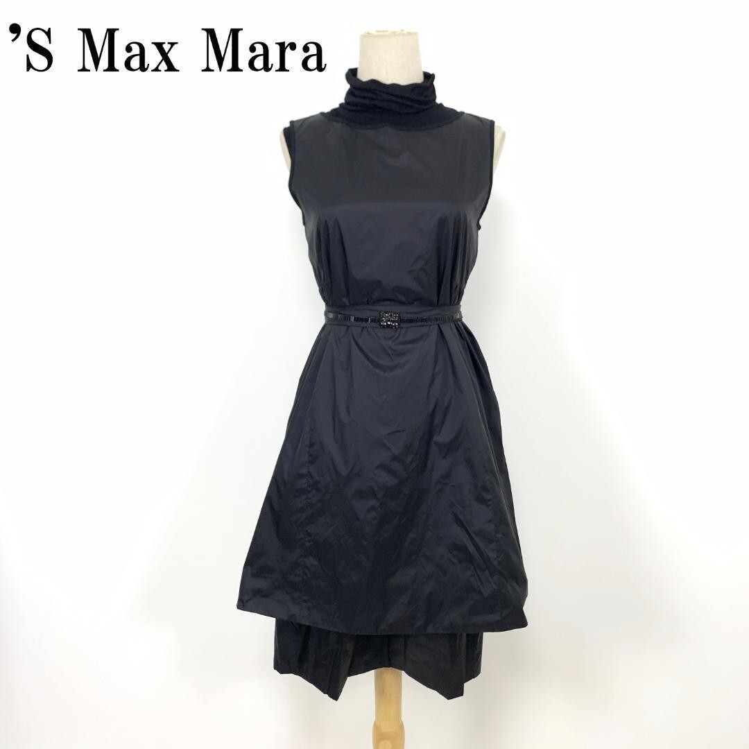- LA7582 エスマックスマーラ 'S Max Mara 2WAY 紐ベルト付き ハイネックトップス レイヤード ノースリーブワンピース 黒 S