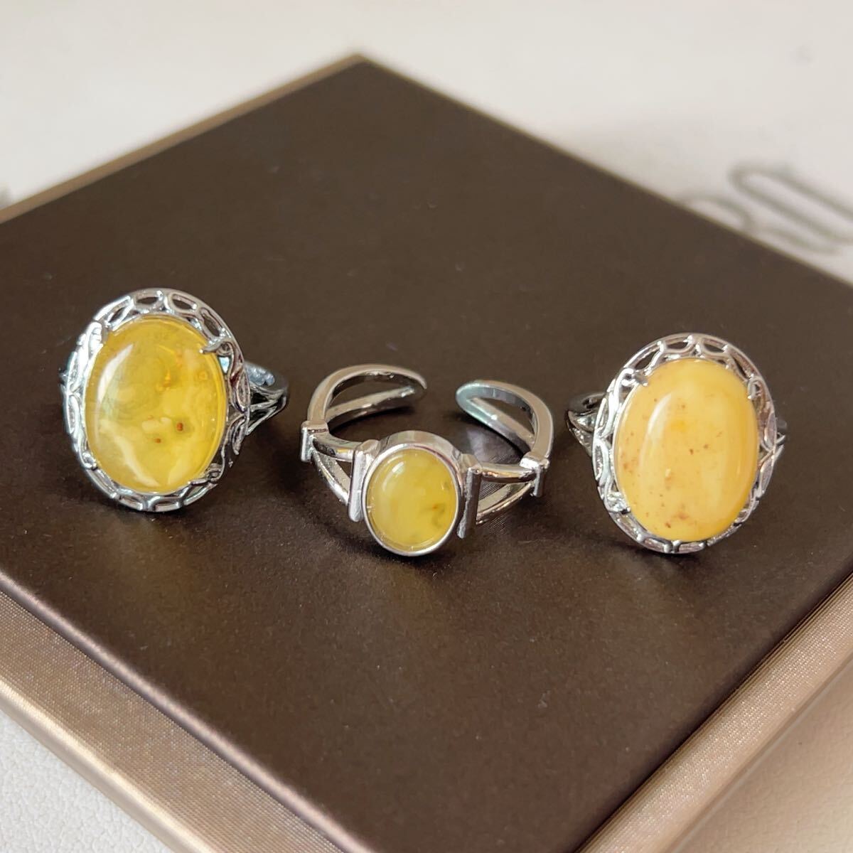 - 3点セット◇蜜蝋琥珀(ハニーアンバー)◇指輪◇リング◇フリーサイズ◇天然石◇パワーストーン◇巾着袋付き◇プレゼントにも 038S101422