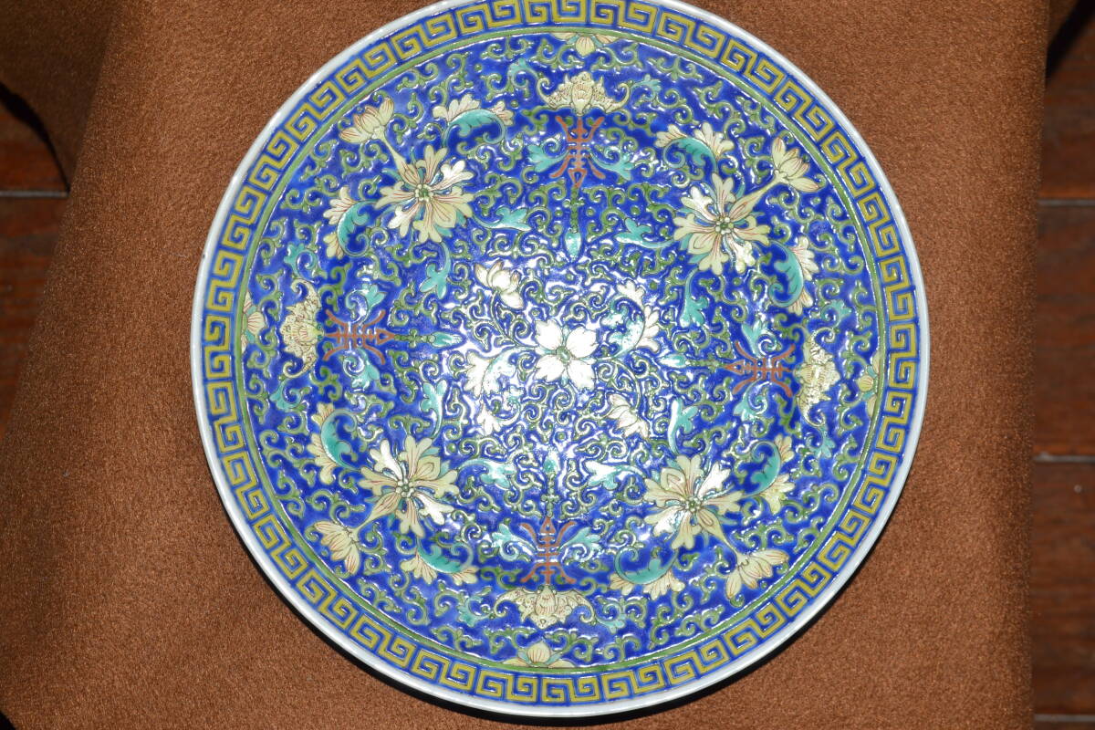 - 中国陶磁 大清光緒年製銘琺瑯釉唐草草花紋皿 端正 優品 逸品 ほぼ完品