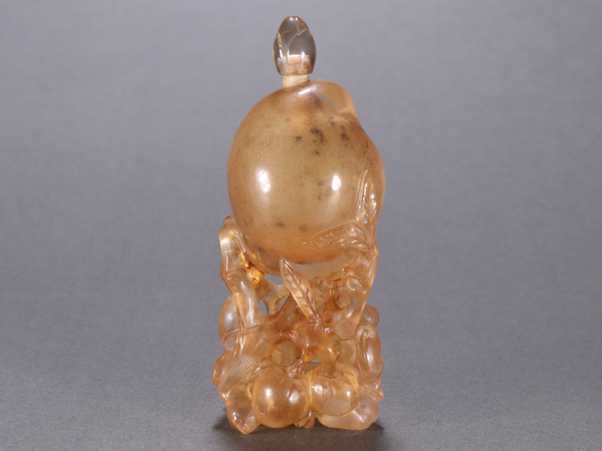 - ▽鴻▽ 清朝時代 水晶彫 霊猿献寿鼻煙壺 時代物 中国古美術 骨董品