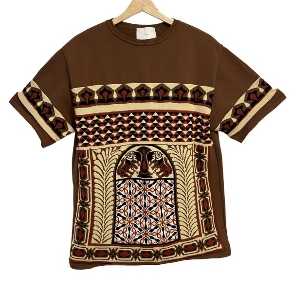 > タン TAN 半袖カットソー サイズF - ブラウン×マルチ レディース クルーネック トップス