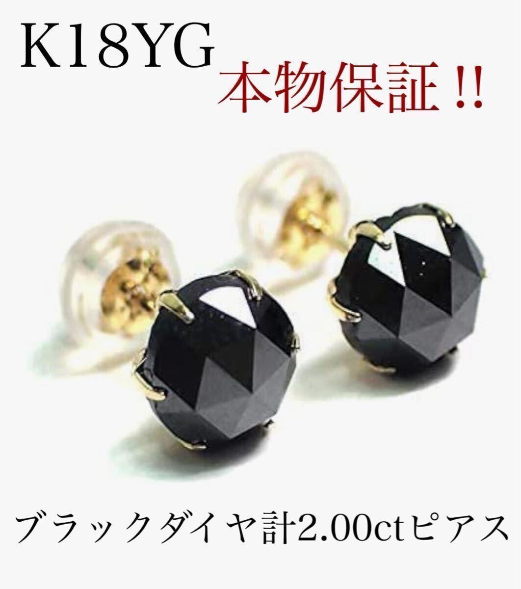 - 【本物保証】K18YG 天然ブラックダイヤモンド 計2.00ct ピアス|各1.00ct刻印|鑑別カード付 18金イエローゴールド 新品 プレゼントにも