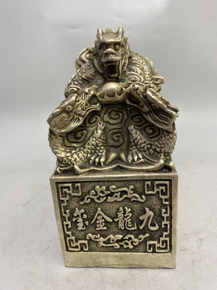 - ▽鴻▽白銅製 龍印章 擺件 置物 賞物 古賞物 古董品 時代物 稀少珍品 中国古玩 中国古美術
