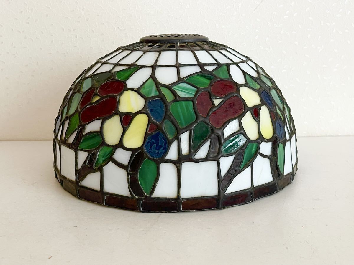 > 【ジャンク】 レトロ 照明器具 カバー 花柄 インテリア ステンドグラス ランプシェード MADE IN KOREA 現状渡し