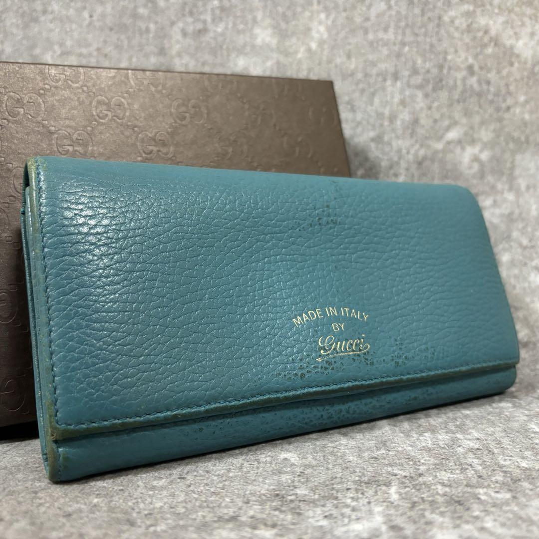 - GUCCI グッチ 二つ折り 長財布 大容量 カード13枚 レザー ブルー