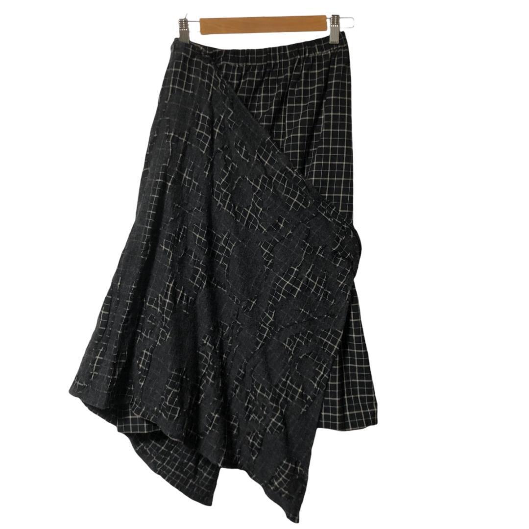 - HaaT ISSEY MIYAKE ハート イッセイミヤケ 変形 チェック ロングスカート 1 黒系 コットン ウール 日本製 レディース M13