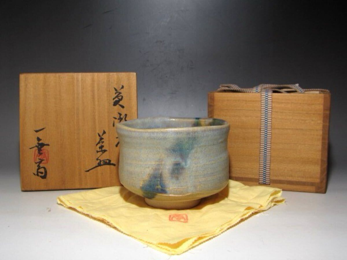 - 加藤唐九郎 黄瀬戸茶碗「苔清水」風格のある逸品☆c822