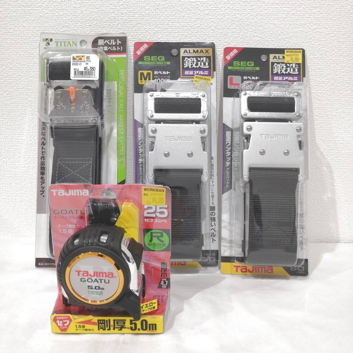 - 【6872】tajima TITAN タジマ Lサイズ Mサイズ ALMAX フルハーネス 胴ベルト×3 セフコンベ 未使用品 メジャー 5m