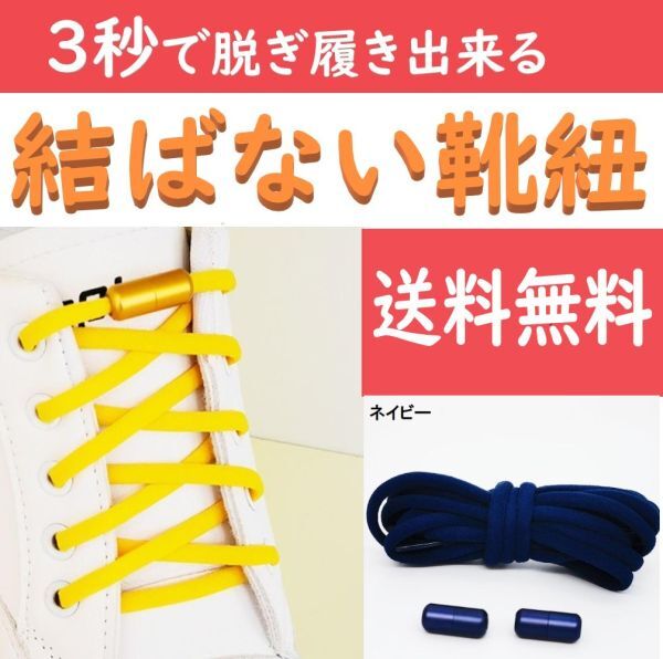 - ☆送料込み☆ 結ばない靴紐 ネイビー ほどけない靴ひも スニーカー おしゃれ 紐 結ばない 伸びる シューレース くつひも 伸縮
