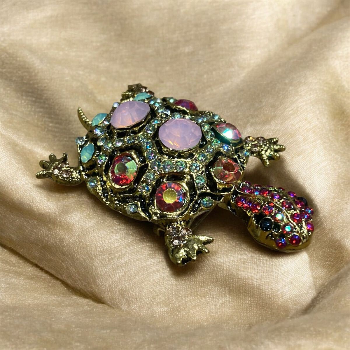 - 【ブローチ】亀 ラインストーン 縁起物 キラキラ ギフト コサージュ 可愛い タートル カラーストーン アクセサリー プレゼント