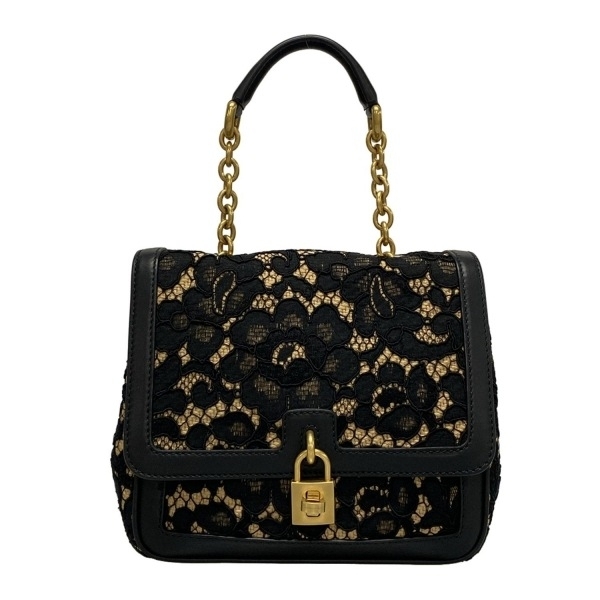 > ドルチェアンドガッバーナ DOLCE&GABBANA ハンドバッグ BB4858 レザー 黒×ベージュ レース バッグ