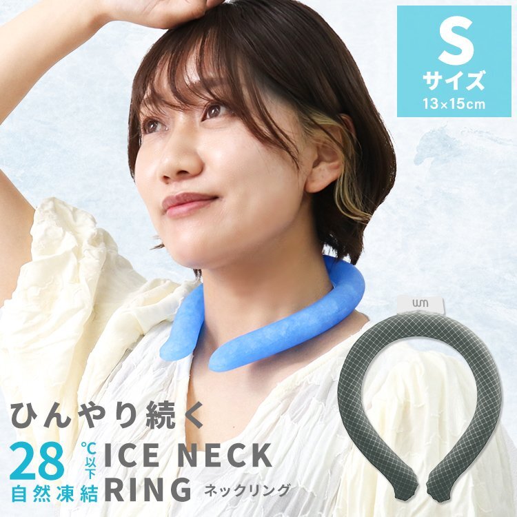> 【Sサイズ/格子柄グレー】ネッククーラー アイス クール リング 自然凍結28℃ 結露しない 熱中症 暑さ対策 冷感 ひんやり 首掛け バンド