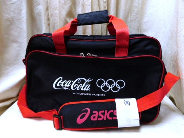 > ☆【長期保管・未使用】アシックス コカ・コーラ オリンピックマーク ショルダーボストンバッグ スポーツバッグ 黒 ☆