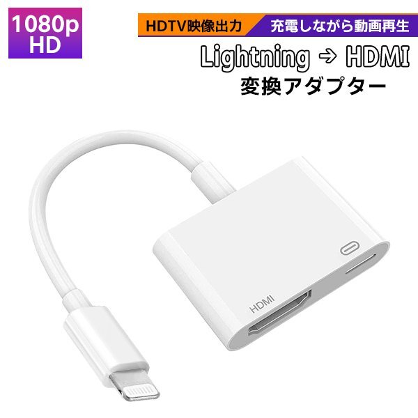 > [8]Lightning to HDMI 変換アダプター 充電 動画再生 映像出力 iPhone TV ゲーム スマホ プロジェクター ライトニング 変換 高解像度