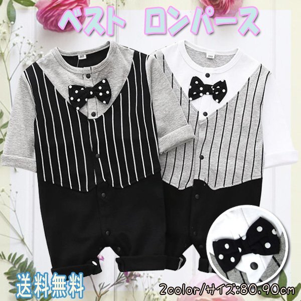 - 送料無料 紳士 ストライプ ベスト ロンパース /選べるサイズ,カラー フォーマル 赤ちゃん カバーオール 蝶ネクタイ 男の子 初節句
