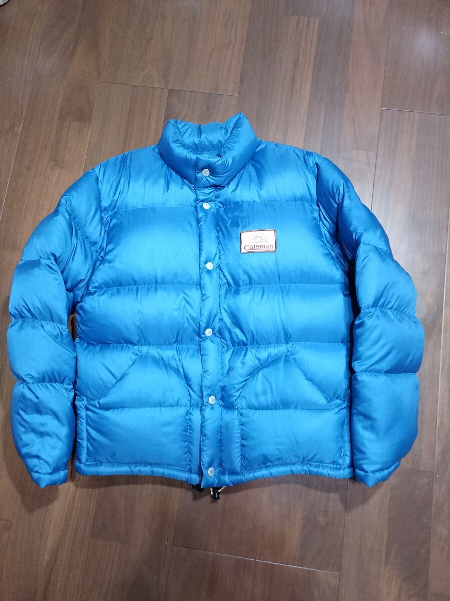 > Coleman コールマン 人気ワッペンロゴ 刺繍 ダウン ジャケット sizeL/青 ◆羽毛■ メンズ 防寒 秋冬 ゴールドウィン