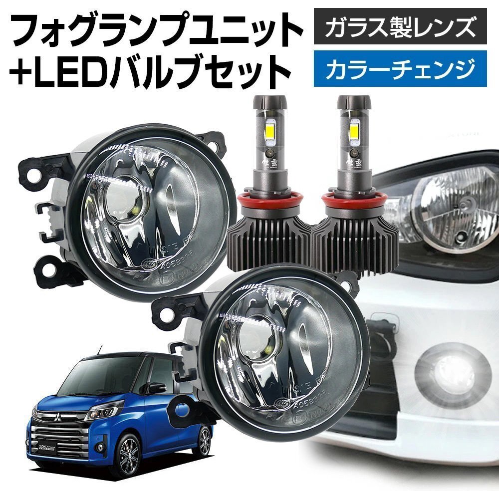 - ekスペース カスタム B11A フォグランプ ユニット+ LEDバルブ 信玄XR ファンレス カラー変更 左右セット ガラス 耐熱 LED HID H8 H11 H16