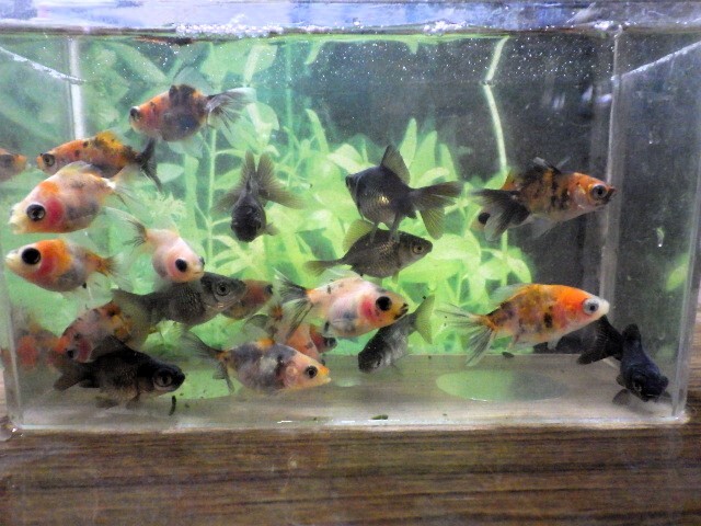 > キャリコ蝶尾の仔魚3~5cm 5匹セット(浜松 二橋養魚場産)。250305。05